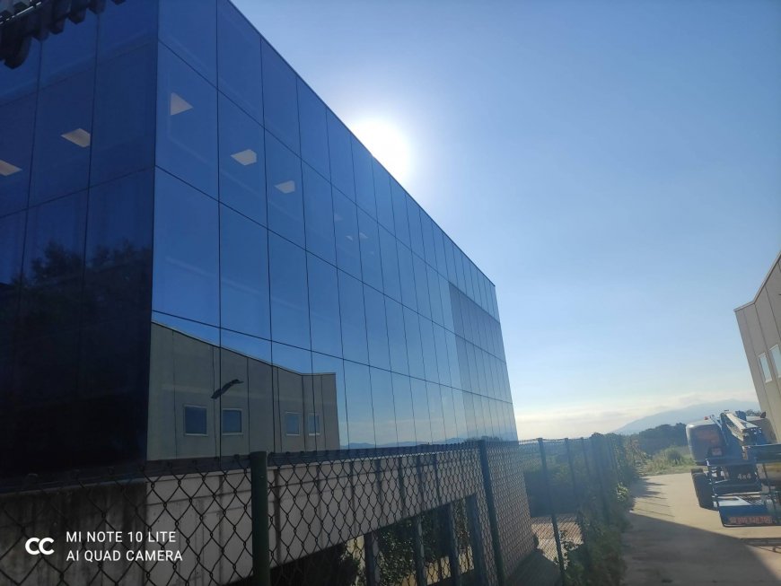 Neteja d' alçada, amb elevador de 26 metres, de façana amb vidres polaritzats #netejadalçada
