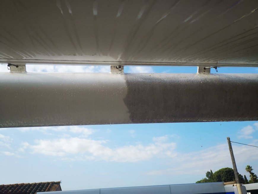 NETEJA DE SOSTRES, MARQUESINES AMB ELEVADOR I PRODUCTES QUÍMICS ESPECÍFICS. A LA DRETA LA ZONA BRUTA I A L'ESQUERRA LA SUPERFÍCIE RESTAURADA PER LA NOSTRA BRIGADA.